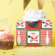 Enveloppement de Noël créatif à thème bowling avec boule de bowling, épingle de bowling et bowler Père Noël amusant.