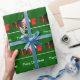 Le jeune chat noir et blanc de smoking se repose sur une boîte de cadeau et souhaite à chacun un papier d'emballage d'amoureux de les chats de Joyeux Noël. Le texte peut être facilement changé ou enlevé