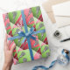 Enveloppement cadeau de crosse créative avec bâtons de lessive sur un arrière - plan rouge et vert.