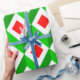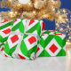 Ce papier d'emballage a un design moderne du milieu du siècle de cubes dans les couleurs de Noël.