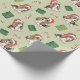 Beagle mignon avec des os de sucre de canne, des cadeaux, et un chapeau de Père Noël sur arrière - plan vert clair.