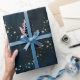 Elégant luxe festif chic draps d'enveloppement cadeau de Noël dans les tons bleu foncé avec l'or - coloré (pas de véritable effet or) étoiles motif.