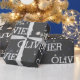 Noël, gris, blanc, nom, papier d'emballage motif. Festive papier d'emballage de Noël, personnalisez-le avec le nom de votre enfant.