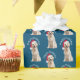 Joli récupérateur d'or avec un casquette du Père Noël sur un arrière - plan bleu avec texte Happy Holiday. La couleur Arrière - plan peut être modifiée.