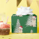 Joli chiot de récupération d'or avec chapeau de Santa et arbre de vacances blanc en flocons de neige sur un arrière - plan vert. La couleur Arrière - plan peut être modifiée.