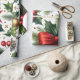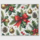 Ce papier d'emballage festif présente un design de Noël classique avec des accents rouges et verts, dont un arc rouge, des feuilles saints, des pinecones et des ornements dorés, le tout dressé contre un arrière - plan blanc. C'est un motif joyeux qui complètera parfaitement n'importe quel thème traditionnel de Noël.