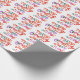 Un papier d'emballage festif de Noël disant "Joyeux tout et Joyeux toujours" en lettres colorées et vives.