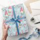 Papier Cadeau Noël mignon bleu Gnome en amour