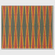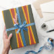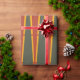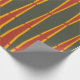 Ce papier d'emballage a un design moderne du milieu du siècle de diamants et triangles en rouge et vert rétro sur un arrière - plan d'or. Va paraître grand sous ton arbre.