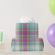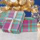 Papier Cadeau Noël moderne Plaid tartan rétro chaud rose aqua
