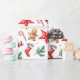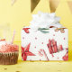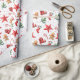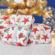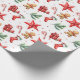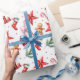 Papier d'emballage de Noël lumineux et joyeux, avec un motif sans couture d'étoiles rouges, de pains d'épices, de feuilles de fourrure, de bas, de cadeaux et de bonbons de vacances, le tout sur un arrière - plan blanc.