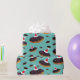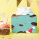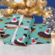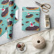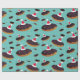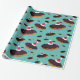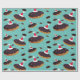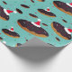 Papier d'emballage de Noël avec un motif amusant de sourire, chocolat gelé, beignet portant des chapeaux santa sur un arrière - plan turquoise. Ajoutez ce papier d'emballage alimentaire mignon, de nouveauté, à vos vacances. N'attendez pas ! Ça pourrait être le vôtre, en ce moment.
