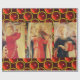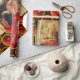 Chef-d'oeuvre médiéval italien Fra Beato Angelico : Musique faisant détail d'ange de Linaioli Tabernacle 1433 Italie, élaboré avec de vieux effets de parchemin vieilli et une pierre gemme améthyste rose 3D brillant.