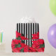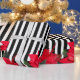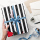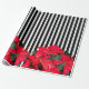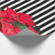 Papier Cadeau Noël noir rayures rouges fleurs blanches