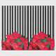Classic mince bandes verticales noir et blanc comme arrière - plan. Fleurs de Noël rouges - poinsettia comme décoration.