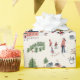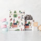 Une jolie scène de ski d'hiver rose et vert avec un village de chalet de ski alpin nordique avec des maisons et lodge une église mignonne et beaucoup de gens et d'enfants ayant hivernage amusant pour Noël dans la nature d'hiver avec neige blanche sous les arbres de Noël dans les montagnes de paysage, imprimé tout-en motif. Parfait pour envelopper les cadeaux pour vos proches lors d'une fête de Noël. OEuvre originale de Caroline Bonne Müller