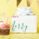 Le design comporte un script personnalisé du souhait "Joyeux Noël !" en vert avec la signature du nom de famille en rouge, sur un arrière - plan blanc. Un joli emballage cadeau personnel et traditionnel pour votre fête de vacances. Pour des questions ou des demandes spéciales, contactez l'artiste à l'adresse wafadahdalcreates@gmail.com. © Wafa Y. Dahdal - Tous droits réservés.