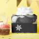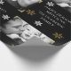 Ajoutez une touche personnelle à votre don. Des flocons d'or et de blanc décorent cet emballage cadeau. Le nom de famille et la photo ajoutent une touche personnelle et spéciale à vos cadeaux de vacances. Joyeuses fêtes !