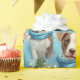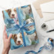 Adorable chiot Piebald Pitbull sur un arrière - plan bleu clair, portant un foulard bleu d'hiver.. plus grand papier pour envelopper vos cadeaux dans cette année, un must pour les familles pitbulles ou tout amoureux des chiens - - A © WhimsicalArtwork™ original -
