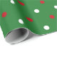 Joli rouge, vert et blanc mignon pois motif cadeau de Noël moderne Papier enveloppant. Motif pois rouge et blanc sur arrière - plan vert. Noël, Fêtes fête cadeau papier d'emballage cadeau.