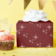 Papier d'emballage motif rétro de Noël, avec un arrière - plan rouge et un design de flocons blancs. Idéal pour ajouter une touche festive et minimaliste à vos cadeaux de vacances.