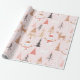 Papier Cadeau Noël rose mignon Arbre de Noël Snowman Reindeer