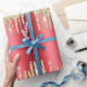 Papier Cadeau Noël Rouge métallique et Parties scintillant d'or