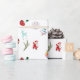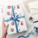 Le papier d'emballage présente un thème de vacances simple et élégant. Une mince branche ornée de divers ornements suspendus, dont un renne, une boule de couleur arc-en-ciel, des billes à motifs, un champignon et une figurine de Père Noël, apporte une touche fantaisiste et festive.