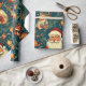 Un motif en papier d'emballage de Noël d'inspiration vintage, avec un Père Noël classique à l'expression joyeuse, entouré d'éléments festifs. Le design comprend des rennes aux gros bois, des ornements dorés, des cadeaux emballés et des branches à feuillage persistant dressées contre un arrière - plan turquoise foncé aux étoiles dispersées, ajoutant une touche fantaisiste et rustique. Le style d'illustration, dessiné à la main et rétro, saisit le charme nostalgique d'une scène de fête traditionnelle, créant une atmosphère chaleureuse et accueillante, parfaite pour envelopper les cadeaux pendant la saison de Noël.