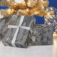 Rennes et écailles de Noël Un riche arrière - plan gris acier rempli de flocons de neige blancs et gris, de rennes bruns et gris, simple et élégant. Idéal pour emballer les cadeaux de Noël précieux