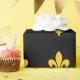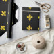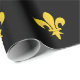 Du papier-cadeau noir avec un motif de Fleur de Lys couleur or : parfait pour un cadeau élégant et royal !