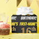 Ce papier d’emballage comporte un message comme "FIRST-NAME’S 16th BIRTHDAY!", avec le "16th" ayant une apparence de couleur fausse/imitation or, et avec le nom et "BIRTHDAY" dans une police amusante et audacieuse. Le nom peut être customisé, et l'arrière - plan est noir de couleur. Un papier comme celui-ci pourrait peut-être être utilisé pour envelopper les cadeaux d'anniversaire donnés à quelqu'un pour célébrer leur seizième anniversaire. [~Z0000203]
