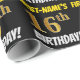 Papier Cadeau Noir, Faux/Imitation Or, "16ème anniversaire"