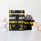 Ce papier d’emballage comporte un message comme "FIRST-NAME’S 21st BANTHDAY!", avec le "21st" ayant une apparence de couleur fausse/imitation or, et avec le nom et "BANTHDAY" dans une police amusante et audacieuse. Le nom peut être personnalisé, et l'arrière - plan est de couleur noire. Un papier comme celui-ci pourrait peut-être être utilisé pour envelopper les cadeaux d'anniversaire donnés à quelqu'un pour célébrer son vingt et unième anniversaire. [~Z0000203]
