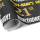 Papier Cadeau Noir, Faux/Imitation Or, "21e ANNIVERSAIRE"