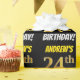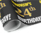 Ce design papier d’emballage comporte un message comme "24e anniversaire d’ANDREW!", avec le "24e" ayant une apparence de couleur fausse/imitation or, et avec le nom et "ANDREDI" dans une police amusante et audacieuse. Le nom peut être personnalisé, et l'arrière - plan est de couleur noire. Un papier comme celui-ci pourrait peut-être être utilisé pour envelopper les cadeaux d'anniversaire donnés à quelqu'un pour célébrer son vingt-quatrième anniversaire. [~Z0000203]