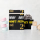 Ce papier d’emballage comporte un message comme "FIRST-NAME’S 2nd BIRTHDAY!", avec le "2nd" ayant une apparence de couleur fausse/imitation or, et avec le nom et "BIRTHDAY" dans une police amusante et audacieuse. Le nom peut être personnalisé, et l'arrière - plan est de couleur noire. Un papier comme celui-ci pourrait peut-être être utilisé pour envelopper les cadeaux d'anniversaire donnés à quelqu'un pour célébrer leur deuxième anniversaire. [~Z0000203]