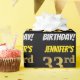 Ce design papier d’emballage comporte un message comme "33e anniversaire de JENNIFER!", avec le "33e" ayant une apparence de couleur fausse/imitation or, et avec le nom et "ANNIVERSAIRE" dans une police amusante et audacieuse. Le nom est personnalisable, et l'arrière - plan est noir de couleur. Un papier comme celui-ci pourrait peut-être être utilisé pour envelopper les cadeaux d'anniversaire donnés à quelqu'un pour célébrer leur trente-troisième anniversaire. [~Z0000203]