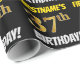 Ce papier d’emballage comporte un message comme "FIRSTNAME’S 37th BIRTHDAY!", avec le "37th" ayant une apparence de couleur fausse/imitation or, et avec le nom et "BIRTHDAY" dans une police amusante et audacieuse. Le nom est personnalisable, et l'arrière - plan est noir de couleur. Un papier comme celui-ci pourrait peut-être être utilisé pour envelopper les cadeaux d'anniversaire donnés à quelqu'un pour célébrer leur trente-septième anniversaire. [~Z0000203]