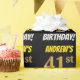 Ce design papier d’emballage comporte un message comme "ANDREW’S 41st BANTHDAY!", avec le "41st" ayant une apparence de couleur fausse/imitation or, et avec le nom et "BANTHDAY" dans une police amusante et audacieuse. Le nom est personnalisable, et l'arrière - plan est noir de couleur. Un papier comme celui-ci pourrait peut-être être utilisé pour envelopper les cadeaux d'anniversaire donnés à quelqu'un pour célébrer leur quarante et unième anniversaire. [~Z0000203]