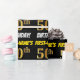 Ce papier d’emballage comporte un message comme "FIRST-NAME’S 50th BIRTHDAY!", avec le "50th" ayant une apparence de couleur fausse/imitation or, et avec le nom et "BIRTHDAY" dans une police amusante et audacieuse. Le nom peut être personnalisé, et l'arrière - plan est de couleur noire. Un papier comme celui-ci pourrait peut-être être utilisé pour envelopper les cadeaux d'anniversaire donnés à quelqu'un pour célébrer son cinquantième anniversaire. [~Z0000203]
