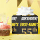 Ce papier d’emballage comporte un message comme "FIRST-NAME’S 55th BIRTHDAY!", avec le "55th" ayant une apparence de couleur fausse/imitation or, et avec le nom et "BIRTHDAY" dans une police amusante et audacieuse. Le nom peut être personnalisé, et l'arrière - plan est de couleur noire. Un papier comme celui-ci pourrait peut-être être utilisé pour envelopper les cadeaux d'anniversaire donnés à quelqu'un pour célébrer son cinquante-cinquième anniversaire. [~Z0000203]
