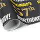 Ce design papier d’emballage comporte un message comme "57e anniversaire de REGINALD!", avec le "57e" ayant une apparence de couleur fausse/imitation or, et avec le nom et "ANNIVERSAIRE" dans une police amusante et audacieuse. Le nom peut être personnalisé, et l'arrière - plan est de couleur noire. Un papier comme celui-ci pourrait peut-être être utilisé pour envelopper les cadeaux d'anniversaire donnés à quelqu'un pour célébrer son cinquante-septième anniversaire. [~Z0000203]