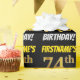 Ce design papier d’emballage comporte un message comme "FIRSTNAME’S 74th BANTHDAY!", avec le "74th" ayant une apparence de couleur fausse/imitation or, et avec le nom et "BANTHDAY" dans une police amusante et audacieuse. Le nom est personnalisable, et l'arrière - plan est noir de couleur. Un papier comme celui-ci pourrait peut-être être utilisé pour envelopper les cadeaux d'anniversaire donnés à quelqu'un pour célébrer leur soixante-quatorzième anniversaire. [~Z0000203]