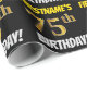 Ce design papier d’emballage comporte un message comme "FIRSTNAME’S 75th BANTHDAY!", avec le "75th" ayant une apparence de couleur fausse/imitation or, et avec le nom et "BANTHDAY" dans une police amusante et audacieuse. Le nom peut être customisé, et l'arrière - plan est noir de couleur. Un papier comme celui-ci pourrait peut-être être utilisé pour envelopper les cadeaux d'anniversaire donnés à quelqu'un pour célébrer leur soixante-quinzième anniversaire. [~Z0000203]