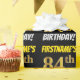 Ce papier d’emballage comporte un message comme "FIRSTNAME’S 84th BIRTHDAY!", avec le "84th" ayant une apparence de couleur fausse/imitation or, et avec le nom et "BIRTHDAY" dans une police amusante et audacieuse. Le nom peut être customisé, et l'arrière - plan est noir de couleur. Un papier comme celui-ci pourrait peut-être être utilisé pour envelopper les cadeaux d'anniversaire donnés à quelqu'un pour célébrer leur quatre-vingt-quatrième anniversaire. [~Z0000203]