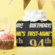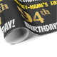 Ce papier d’emballage comporte un message comme "FIRST-NAME’S 94th BIRTHDAY!", avec le "94th" ayant une apparence de couleur fausse/imitation or, et avec le nom et "BIRTHDAY" dans une police amusante et audacieuse. Le nom peut être personnalisé, et l'arrière - plan est de couleur noire. Un papier comme celui-ci pourrait peut-être être utilisé pour envelopper les cadeaux d'anniversaire donnés à quelqu'un pour célébrer son quatre-vingt-quatorzième anniversaire. [~Z0000203]