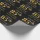 Ce design papier d'emballage comporte un message comme "HAPPY 85th BIRTHDAY", avec le "85th" ayant une apparence fausse/imitation or. Il comporte également un nom qui peut être customisé, et un arrière - plan de couleur noire. Il pourrait peut-être être utilisé pour envelopper les cadeaux donnés pour le quatre-vingt-cinquième anniversaire de quelqu’un. [~Z0000130]