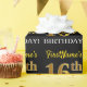Ce design papier d’emballage comporte un message comme "16e anniversaire de prénom!", avec le "16e" ayant une apparence de couleur fausse/imitation or. Le nom peut être personnalisé, et l'arrière - plan est de couleur noire. Il pourrait peut-être être utilisé pour envelopper les cadeaux donnés pour le seizième anniversaire de quelqu’un. [~Z0000177]