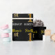 Ce design papier d’emballage comporte un message comme "1er ANNIVERSAIRE de FirstName!", le "1er" ayant une apparence de couleur fausse/imitation or. Le nom peut être personnalisé, et l'arrière - plan est de couleur noire. Il pourrait peut-être être utilisé pour envelopper les cadeaux donnés pour le premier anniversaire de quelqu’un. [~Z0000177]
